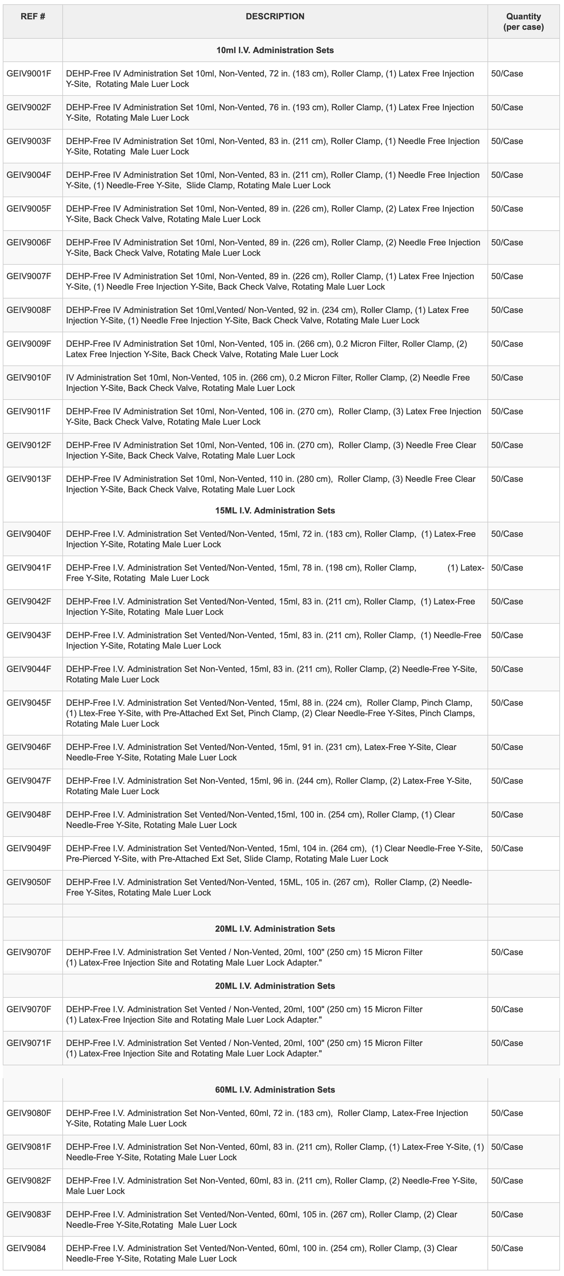 • Available in Needle-Free and Latex-Free Injection Y-sites